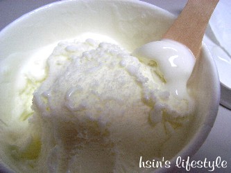 我想應該是很實在的鮮奶製成,我們等了好一會兒才開始微微的融化,